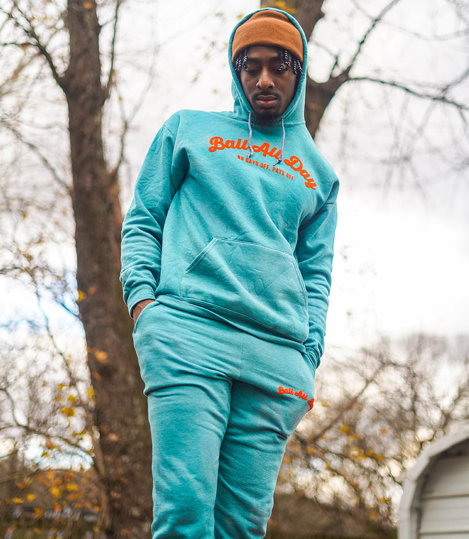 A peach colored T-Shirt with a 3D puffed BALL ALL DAY logo.
